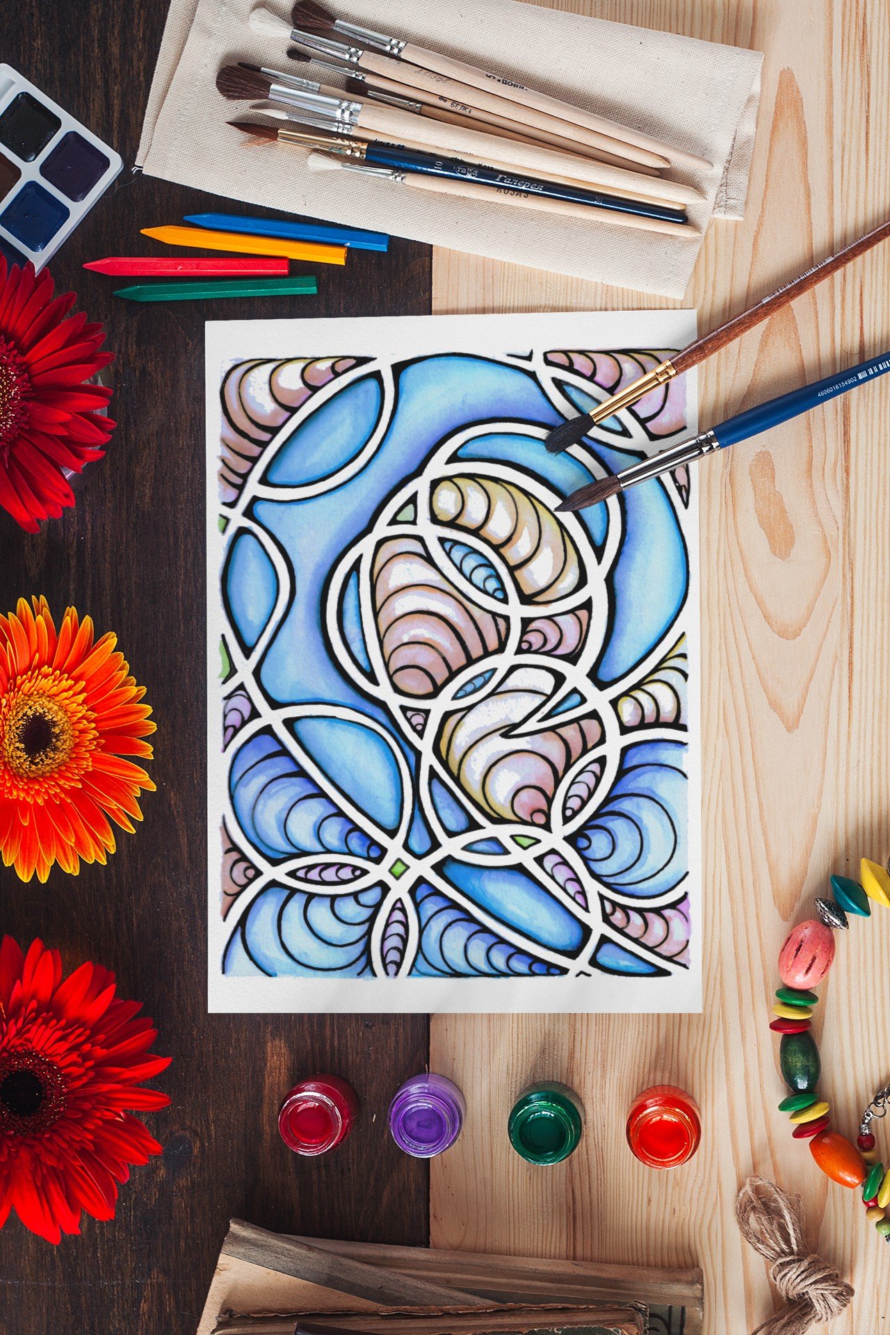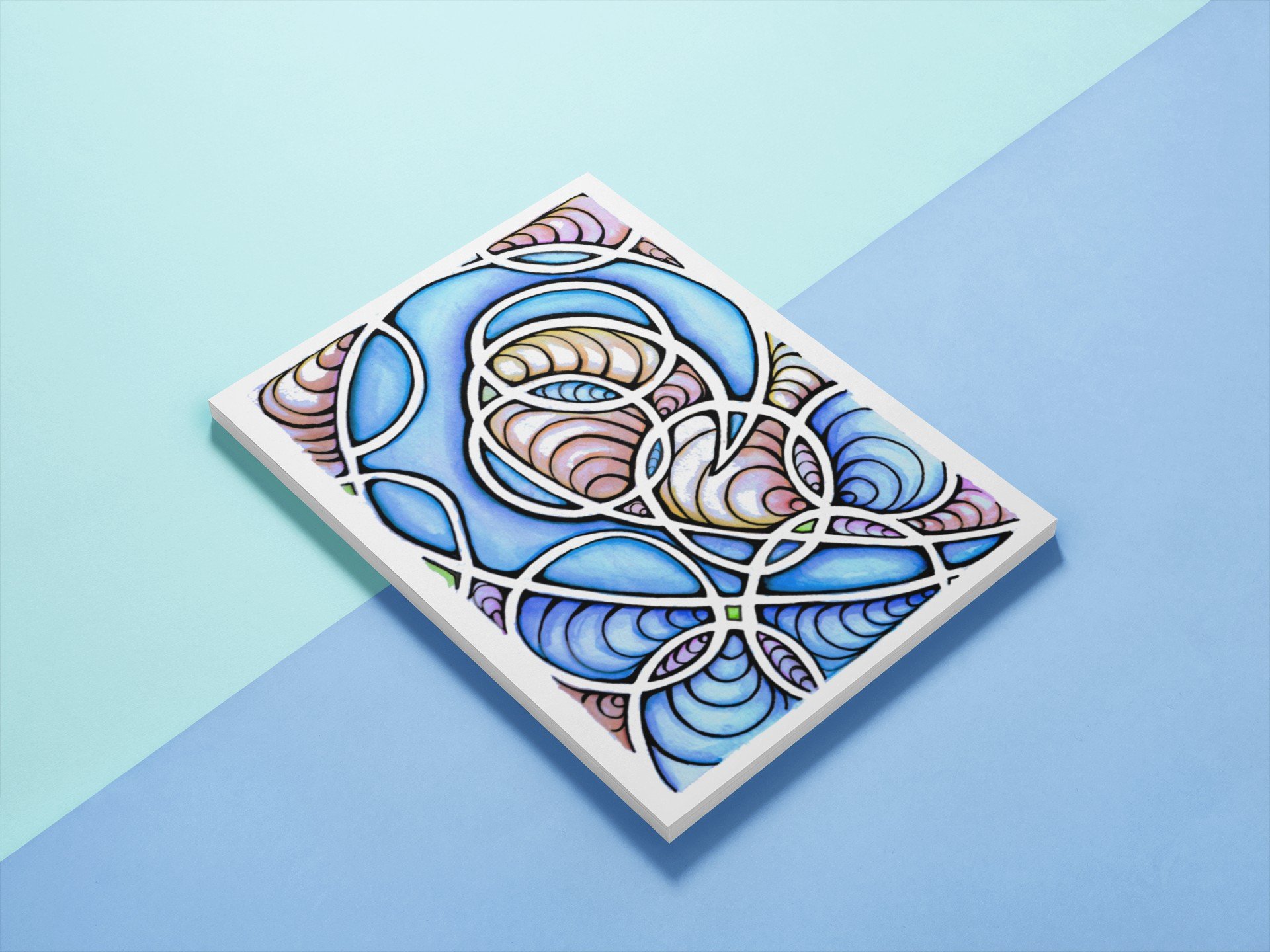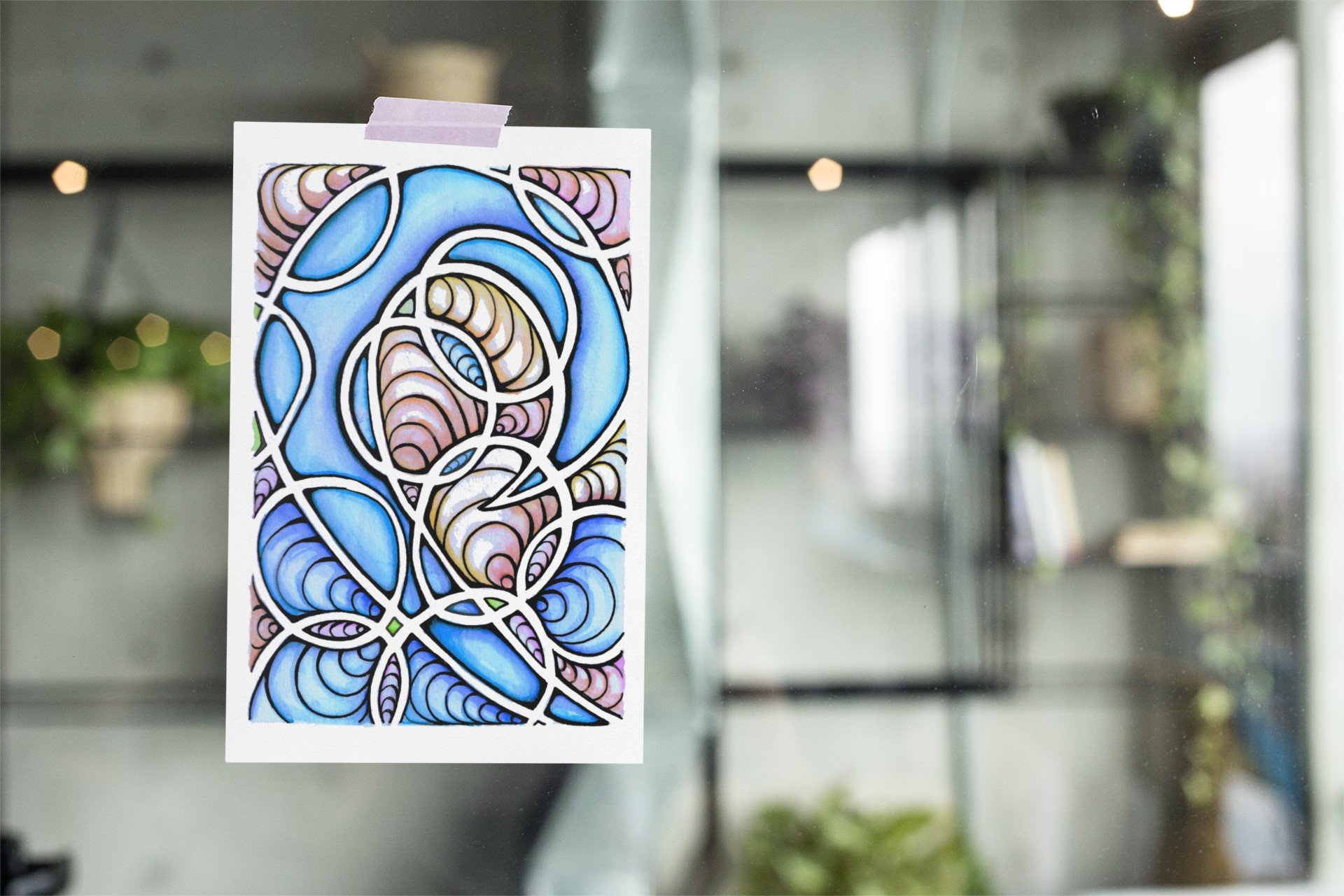 500+ Postcards - Stained Glass Blue Wave - Postcards To Voters - Full Size